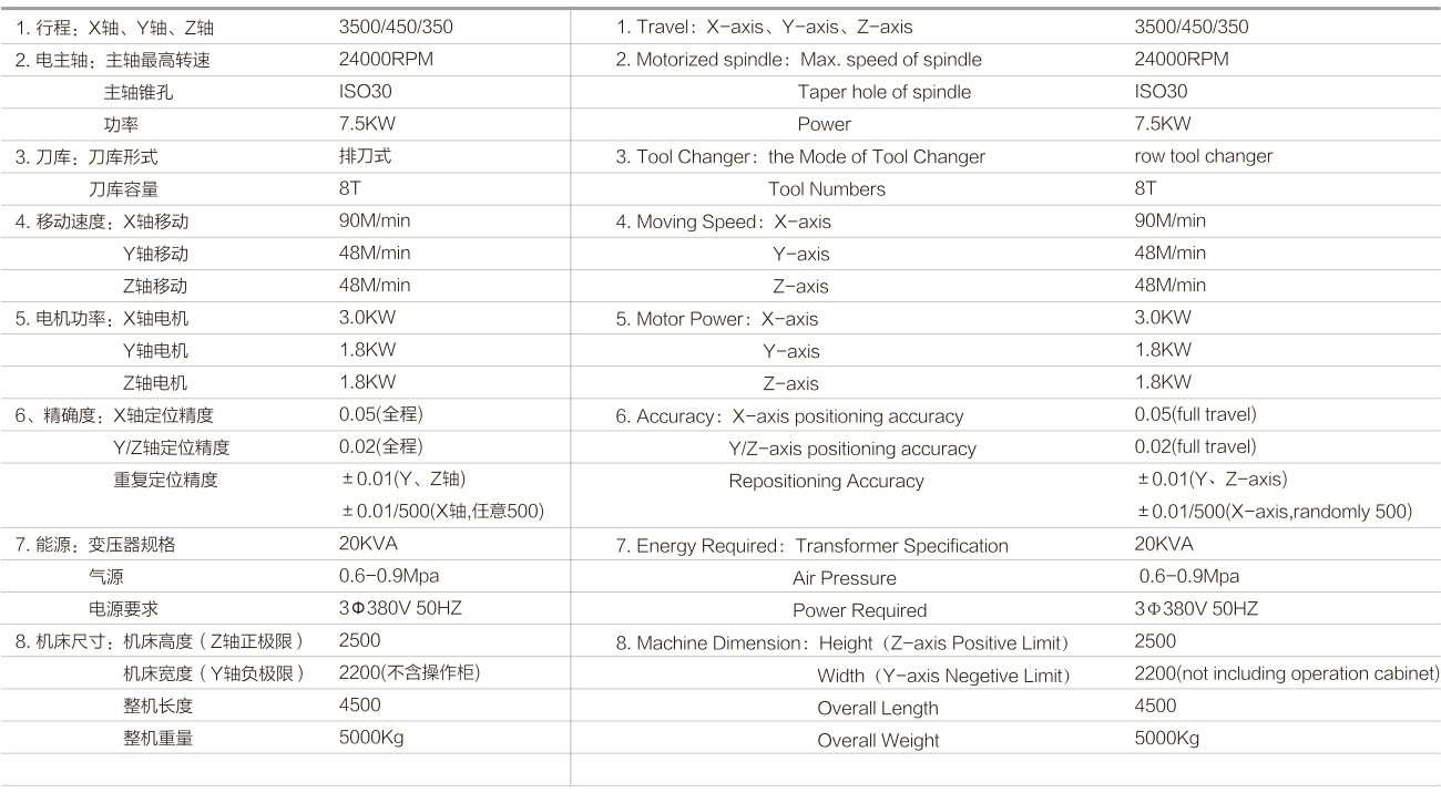 5.采用ISO30-8T排式刀库,可实现自动换刀功能。