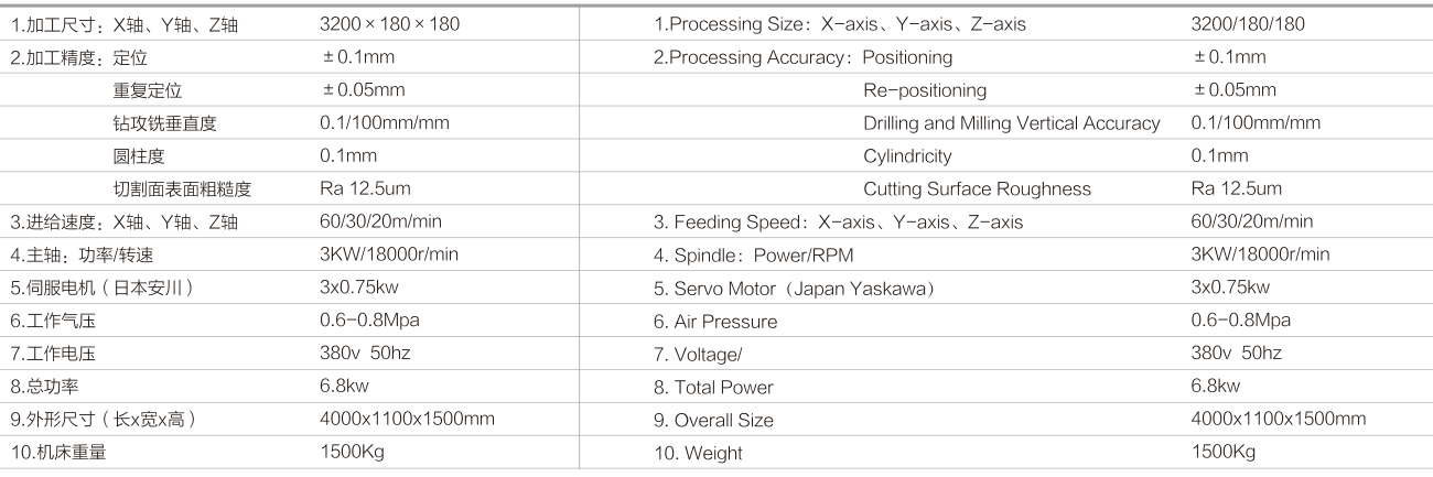1、本机床适用于各种铝型材的安装孔,流水孔,锁孔,型孔等加工工艺。