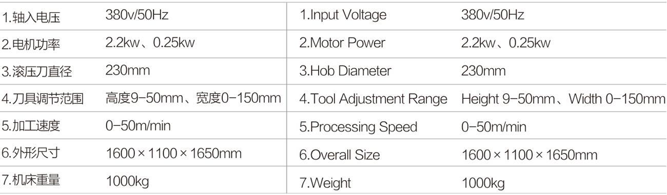 本机是将隔热条与铝合金型材紧密压合的关键设备,由3对12个滚压力盘将已经穿好隔 热条的型材槽口压紧,以确保成品隔热型材的整体度。